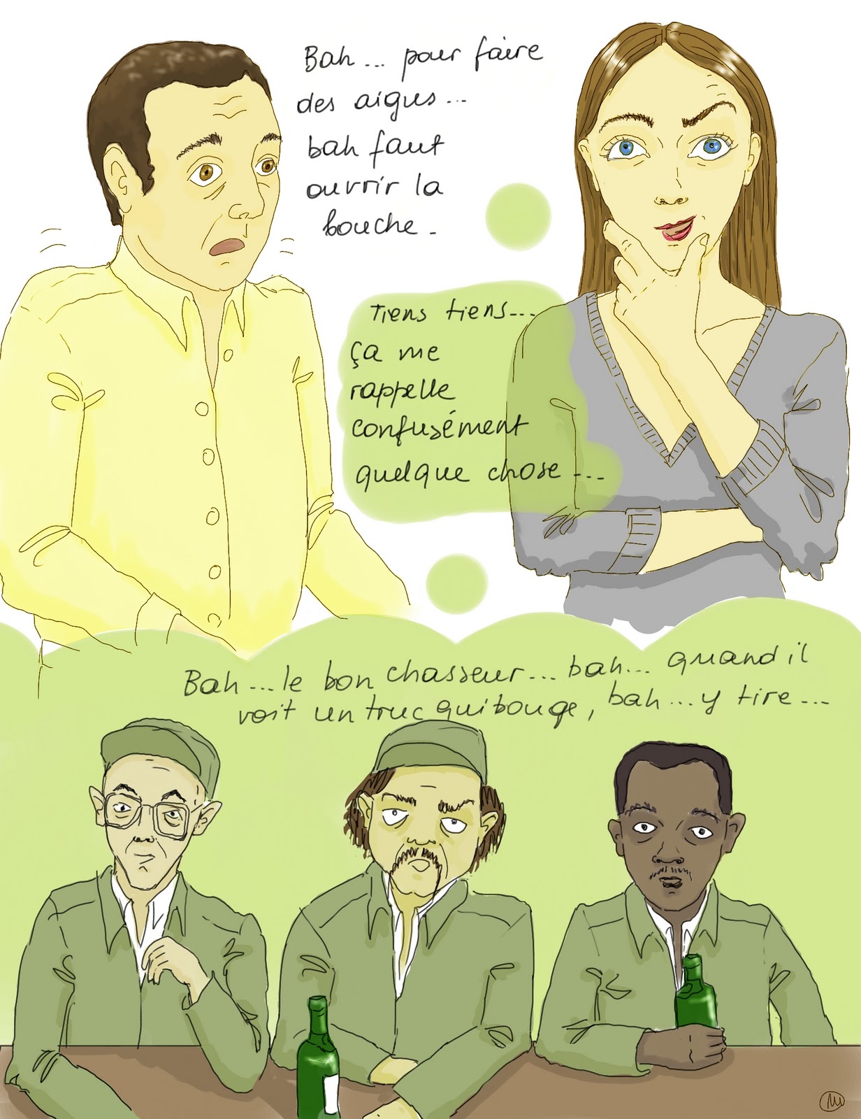 Comme je disais donc, les dialogues ci-dessus sont, oui, oui ! , des conseils que j'ai ré-el-le-ment entendus de la bouche de certains de mes professeurs ! (et parfois ça m'a très bien servi à comprendre, comme quoi... parfois, le chant, c'est du grand n'importe quoi, mais pour nos cerveaux de chanteurs, ça peut fonctionner !! :-)